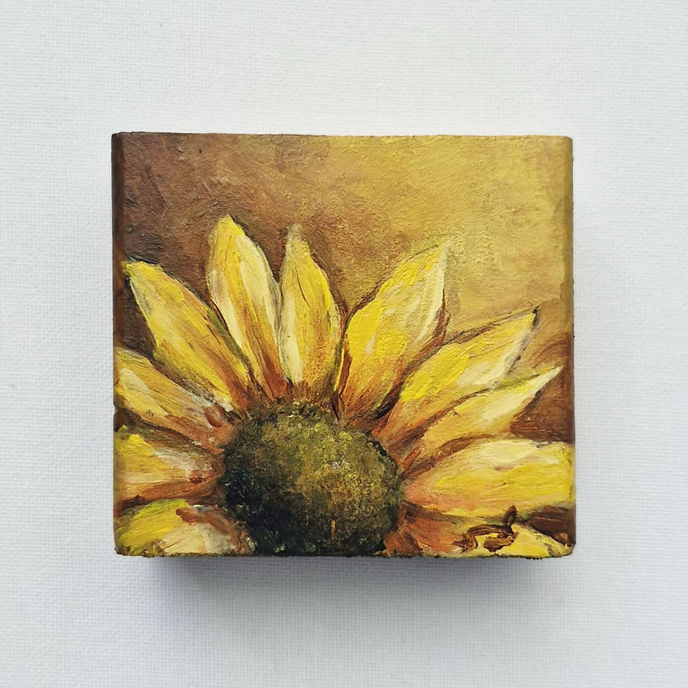 Sunflower Close-Up – Hand-Painted Wooden Block (Small)